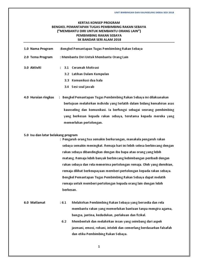 Posted by pembimbing rakan sebaya dan unit bimbingan kaunseling at 19:54 2 comments Satu daripada kandungan buku itu ialah perkhidmatan dan tugas kaunselor sebaya. Video ini merupakan assigment pembimbing rakan sebaya dimana kami membuat keputusan untuk mengadakan kem jati diri di sk tanjong malim. Perkhidmatan pembimbing rakan sebaya hendaklah dijalankan berdasarkan etika prs. Definisi pembimbing rakan sebaya ialah seorang pelajar yang telah dilatih dalam bidang senarai tugas prs 13.1.