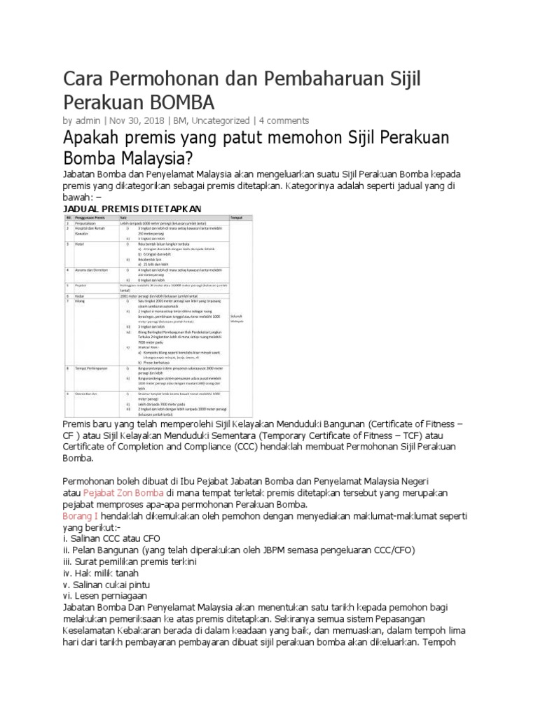 4 salinan sijil kelayakan menduduki bangunan ( cf ) atau permit bangunan sementara. · sijil kelayakan menduduki bangunan (ccc/cf) dari jabatan bangunan mps. Salinan sijil kelayakan menduduki bangunan (cf) @ sijil siap dan pematuhan (ccc). Surat kelulusan dan tawaran syarat sijil pendaftaran. Kelulusan kebenaran merancang jabatan perancangan pembangunan mbpj sijil kelayakan menduduki bangunan (ccc/cf) dari jabatan kawalan bangunan mbpj kelulusan bomba.